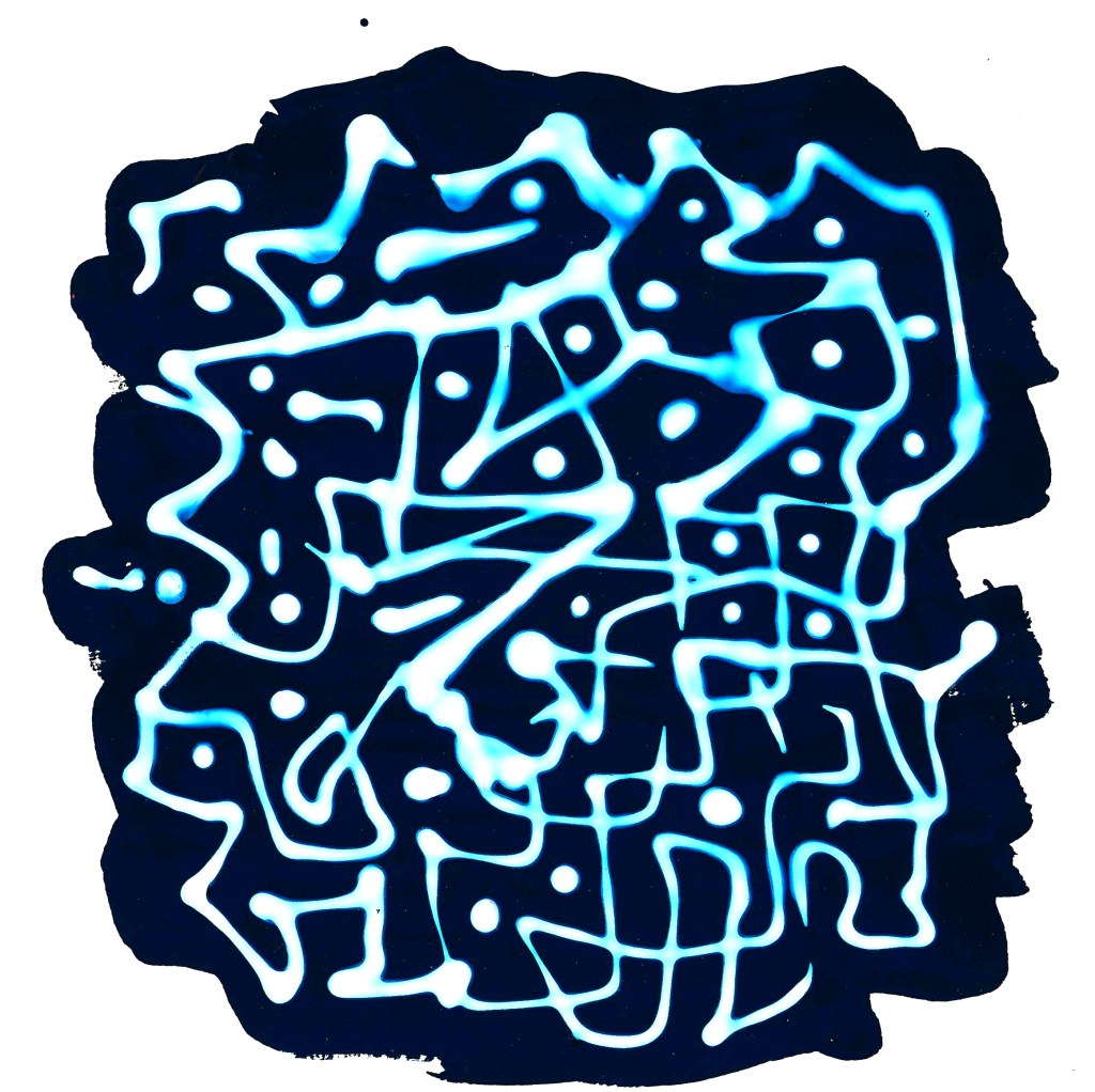 Brown fountain pen ink infused in clear elmer’s glue and get this, on water media hardboard. No doubt takes quadruply longer to thoroughly dry before draft two, what happens to happy accidents if I can’t count on watercolor paper warping